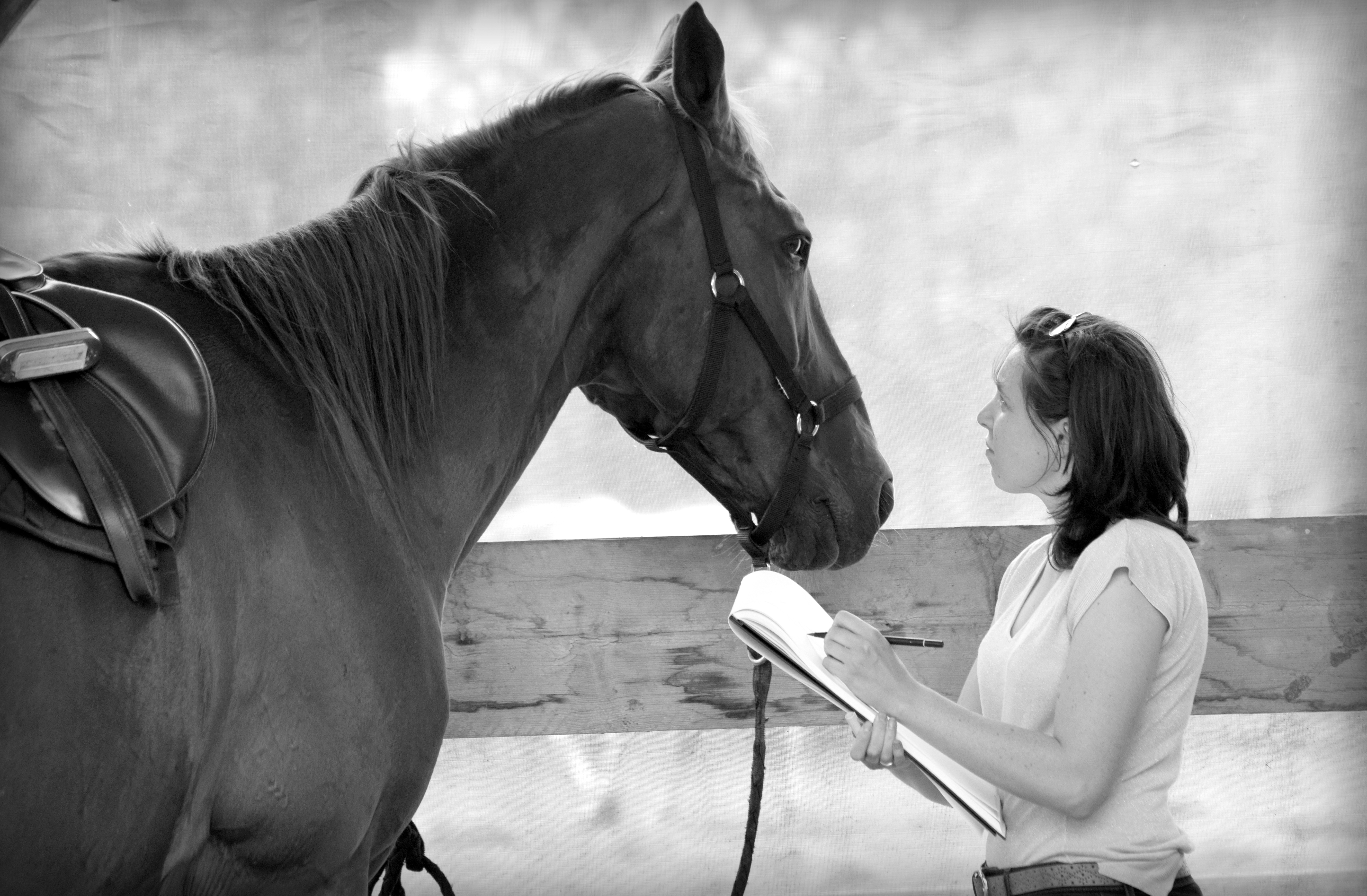Après sa formation, Brigitte choisit de s’installer en Touraine et découvre le milieu du cheval, d’abord en arpentant les prés puis en rencontrant des professionnels qui partagent leur passion du lien avec l’animal. Dresseurs de chevaux, cavaliers western, cavaliers du Cadre Noir de Saumur mais aussi fauconniers, dresseur canins lui permettent de s’immerger dans leur monde au quotidien, jusque dans les carrières de dressage et les écuries.